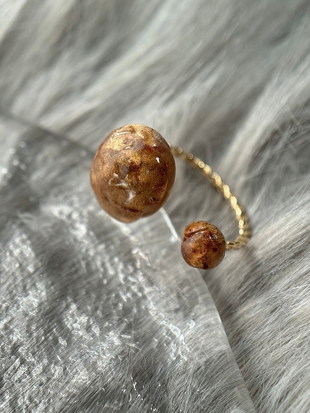 惑星リングシリーズ 「Venus」 惑星リングシリーズの1作目は、金星。 金星のあたたかな光と、神秘的な輝きをひと粒に閉じ込めた 「Venus」 まるで小さな惑星をそのまま指先に宿したような、深いゴールドの煌めきが魅力のリングです。 冬の澄んだ空気の中で、光を柔らかく反射し ふわふわニット、白のファーアウターや、 ブラウンのコート、シンプルなモノトーンコーデなどなど、 どんなスタイルにも溶け込みながら、手元に上品なアクセントを添えてくれます。 ひとつで存在感を放ちつつ、重ね付けにも馴染む万能さ。 寒い季節のコーデを、そっと華やかに格上げしてくれる特別なアイテム。 小さい方のカボションも、形から手作りし全体の雰囲気に合うようデザインしています。 流行のブラウンコーデにしっくりと来る、じんわりと滲み出るニュアンス。 ニュアンスネイルと一緒につけるとお手元が一気にこなれ感が出てコーデに深みが増します。 大人ブラウンな配色で、落ち着いた雰囲気を醸し出します。 ・ニュアンスネイルをよくする方 ・ネイルチップは少し面倒で手軽にニュアンスを楽しみたい ・大人色なニュアンスが欲しい そんな方におすすめしたい、金星の輝きを閉じ込めたアクセサリーです。 惑星の特別な輝きを、ぜひお手元に。 《カボションのサイズ》 縦1.5cm × 横1.2cm +-0.1〜0.2cmの誤差あり。 《金具》 ・サージカルステンレス316L + ニッケルフリーメッキ ・14〜18号 or 11〜13号 サイズ調整のオープンリング 《オンラインショップ限定》 ・アクセサリーポーチ ・お手入れクロス ・サンキューカード ・お手入れ方法How To をお入れしています。 アクセサリーの保存にお使いくださいませ。 ーーーーーーーーーーーーーーーーーーーーー 【 ご購入前に必ず確認していただきたいこと 】 ○必ずattentionをお読みください。 ○クリックポストでの発送となります。 ○金具の種類をお選びいただきカートに入れてください。 ○お使いの画面により色味が多少異なる場合がございます。 ○ハンドメイドですので、強い力で扱ったり落としたりすることで破損する可能性がございます。 【 ニュアンスアートについて 】 一つ一つ個性があり、全く同じアートにならないのが特徴です。 真っ直ぐな線や決まった形ではなく、色と色の重なりを見ながら全体の雰囲気で作り上げるアートになります。 ぼんやりとしたアンニュイな雰囲気を演出でき、自分の好みを表現できるので、 「曖昧な色の変化」や「繊細な色の移り変わり」を楽しんでいただけたら嬉しいです。 Instagram @choco_handmade_acc