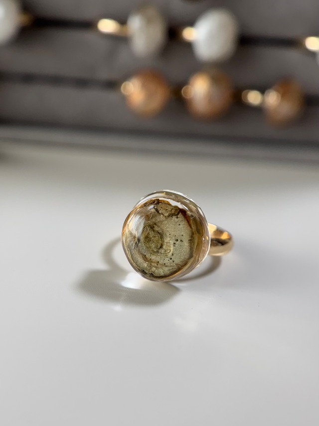 「earth」 ゴールドの色味を基調とし、土のような、砂のような、地球の大地を表現したニュアンスです。 でこぼことした質感のあるアートが特徴的で、引き込まれるような奥行きが魅力です。 カボション自体は小さめですが、存在感のあるニュアンスに仕上がりました。 ヴィンテージゴールドの色合いで大人っぽく、 カジュアルにスウェット合わせやモノトーンスタイルにもマッチします。 また、古着スタイルなどにも合わせやすく、人気のリングです。 高級感のあるゴールドのニュアンスで、オケージョンスタイルにもマッチします。 つけるだけで、垢抜けた手元を実現します。 どんなカラーの服にもぴったりとマッチし、ひとつ持っているだけで万能に活躍してくれます。 リングはサイズ調整可能な金具をご用意しております。 細かいサイズのわからないお友達やご家族へのプレゼントにも◎ 大量生産には出来ない、一つ一つが手作りのアクセサリーで、日常を彩ってみませんか? サージカルステンレスなので、水に強く錆びにくいので、日々の手洗いやお皿洗いなどを邪魔せず、日常使いしやすい素材です。 サイズ:縦1.5cm × 横1.2cm 材質:サージカルステンレス+ゴールドメッキ(ニッケルフリー) ーーーーーーーーーーーーーーーーーーーーー 【 ご購入前に必ず確認していただきたいこと 】 ○必ずattention-必読ページをお読みください。 ○クリックポストでの発送となります。 ○金具の種類をお選びいただきカートに入れてください。 ○お使いの画面により色味が多少異なる場合がございます。 ○ハンドメイドですので、強い力で扱ったり落としたりすることで破損する可能性がございます。 【 ニュアンスアートについて 】 一つ一つ個性があり、全く同じアートにならないのが特徴です。 真っ直ぐな線や決まった形ではなく、色と色の重なりを見ながら全体の雰囲気で作り上げるアートになります。 ぼんやりとしたアンニュイな雰囲気を演出でき、自分の好みを表現できるので、 「曖昧な色の変化」や「繊細な色の移り変わり」を楽しんでいただけたら嬉しいです。 Instagram @choco_handmade_acc