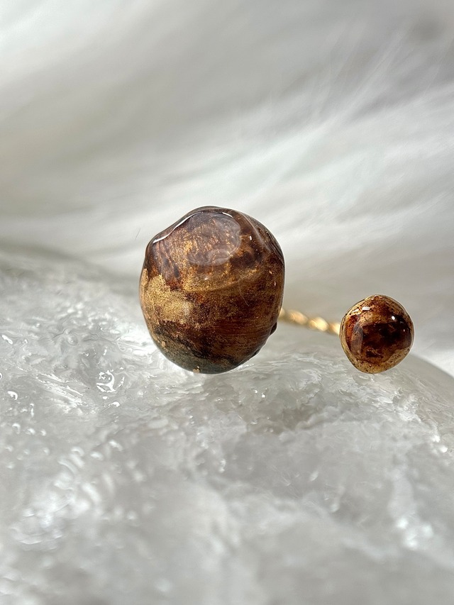 「地層」リング 地層のような質感とレイヤーの配色が魅力のニュアンスです。 メインの大きい方のカボションでは、山肌のような質感を再現。 小さい方のカボションも、形から手作りし全体の雰囲気に合うようデザインしています。 流行のブラウンコーデにしっくりと来る、じんわりと滲み出るニュアンス。 ニュアンスネイルと一緒につけるとお手元が一気にこなれ感が出てコーデに深みが増します。 大人ブラウンな配色で、落ち着いた雰囲気を醸し出します。 ・ニュアンスネイルをよくする方 ・ネイルチップは少し面倒で手軽にニュアンスを楽しみたい ・大人色なニュアンスが欲しい そんな方におすすめしたい、ブラウンなニュアンスネイルを閉じ込めたアクセサリーです。 《カボションのサイズ》 縦1.5cm × 横1.2cm +-0.1〜0.2cmの誤差あり。 《金具》 ・サージカルステンレス316L + ニッケルフリーメッキ ・14〜18号 or 11〜13号 サイズ調整のオープンリング 《オンラインショップ限定》 ・アクセサリーポーチ ・お手入れクロス ・サンキューカード ・お手入れ方法How To をお入れしています。 アクセサリーの保存にお使いくださいませ。 ーーーーーーーーーーーーーーーーーーーーー 【 ご購入前に必ず確認していただきたいこと 】 ○必ずattention-必読ページをお読みください。 ○クリックポストでの発送となります。 ○金具の種類をお選びいただきカートに入れてください。 ○お使いの画面により色味が多少異なる場合がございます。 ○ハンドメイドですので、強い力で扱ったり落としたりすることで破損する可能性がございます。 【 ニュアンスアートについて 】 一つ一つ個性があり、全く同じアートにならないのが特徴です。 真っ直ぐな線や決まった形ではなく、色と色の重なりを見ながら全体の雰囲気で作り上げるアートになります。 ぼんやりとしたアンニュイな雰囲気を演出でき、自分の好みを表現できるので、 「曖昧な色の変化」や「繊細な色の移り変わり」を楽しんでいただけたら嬉しいです。 Instagram @choco_handmade_acc