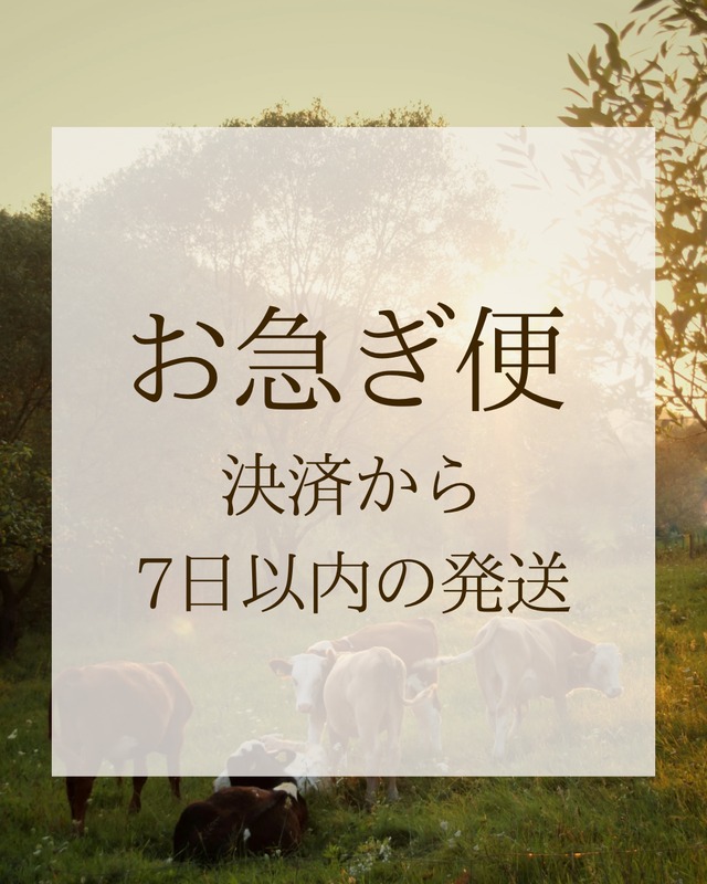 決済完了より7日以内の発送をご希望の方は、こちらを一緒にカートにお入れください。 《注意》 ・こちらをカートに入れずに、備考欄に「◯日までに使いたい」と記載されても、ご対応できませんのでご注意ください ・毎月3名様限定 ・1注文につき1つまで