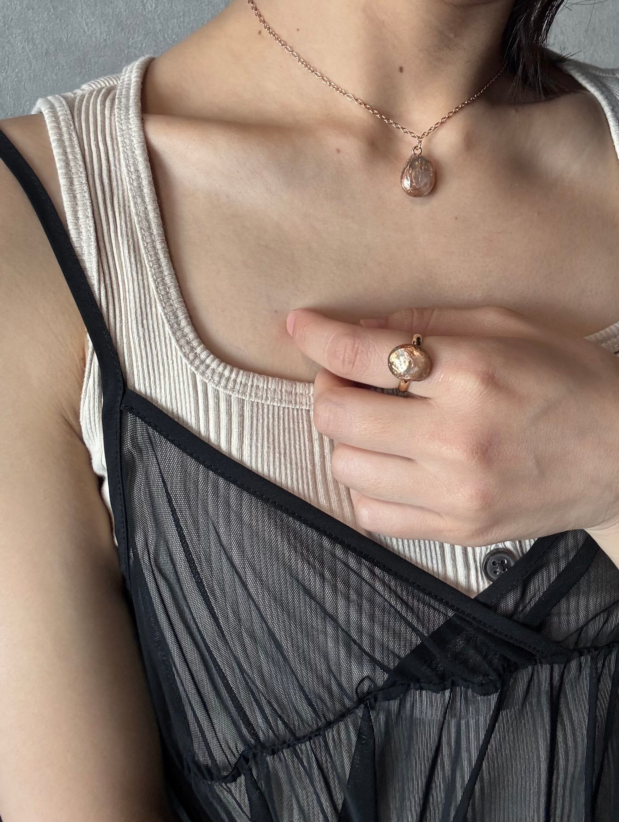ピンク色に近い色の淡水パールをイメージして作りました。