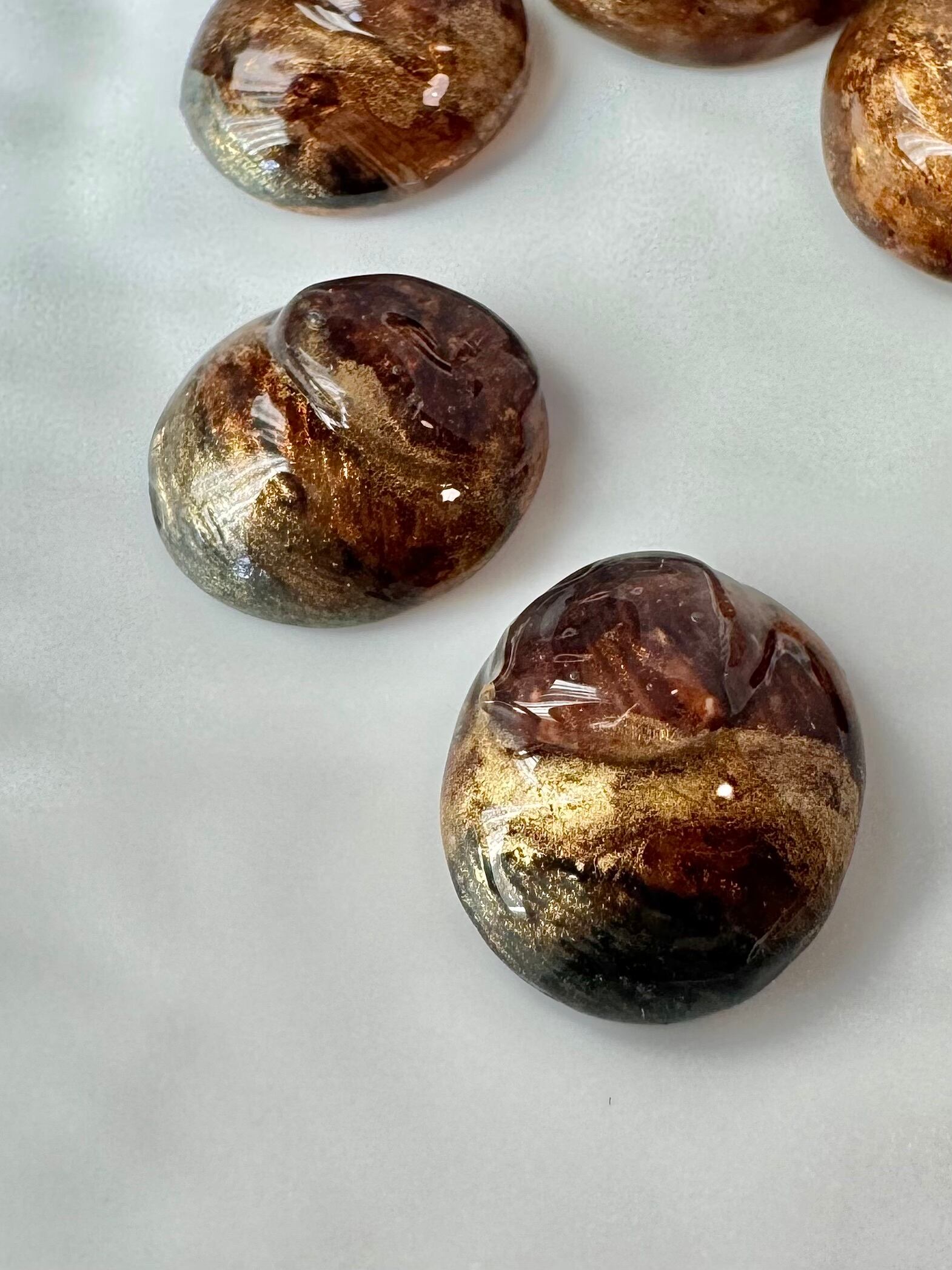 小さい方のカボションも、形から手作りし全体の雰囲気に合うようデザインしています。