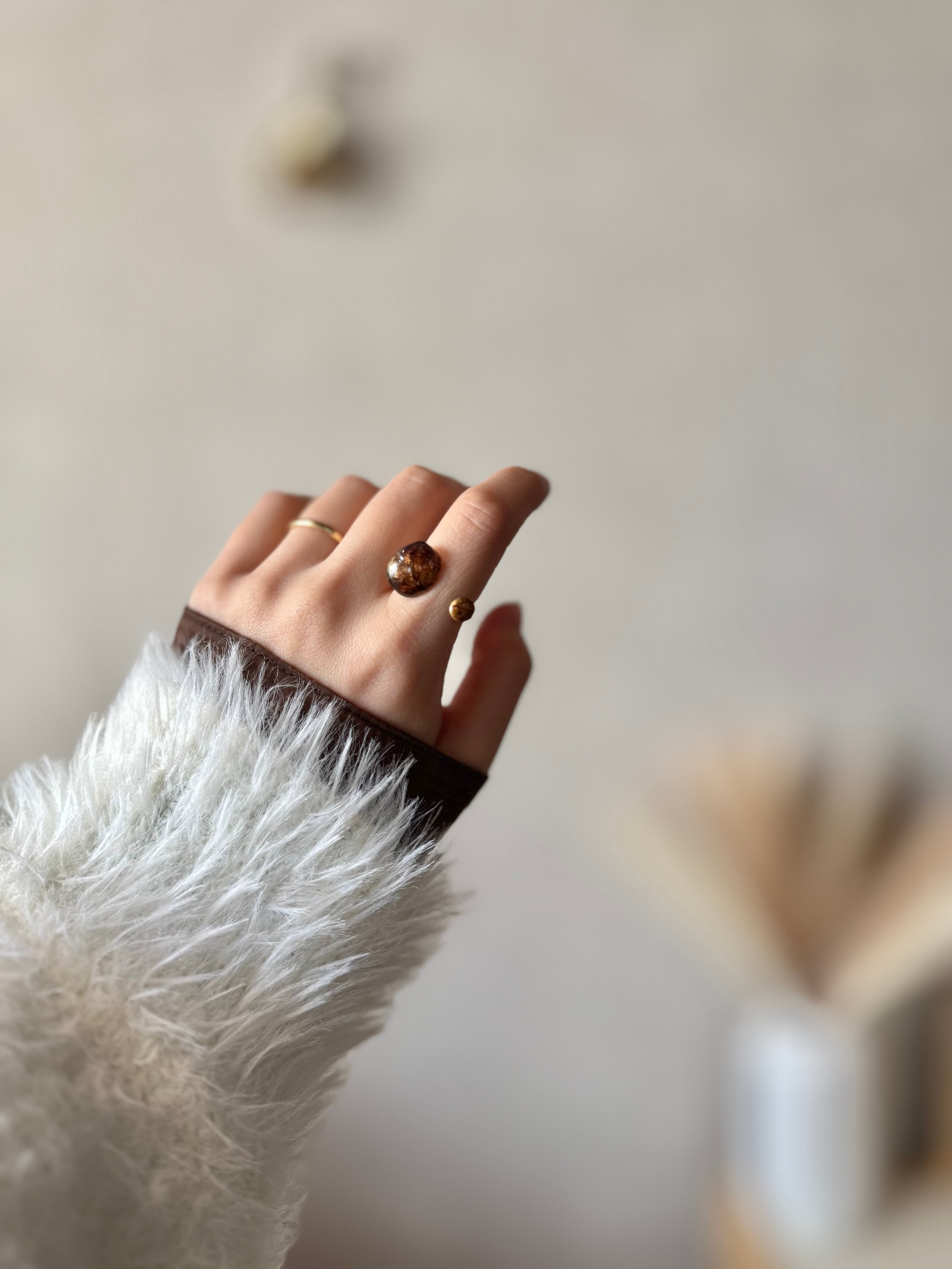 そんな方におすすめしたい、ブラウンなニュアンスネイルを閉じ込めたアクセサリーです。