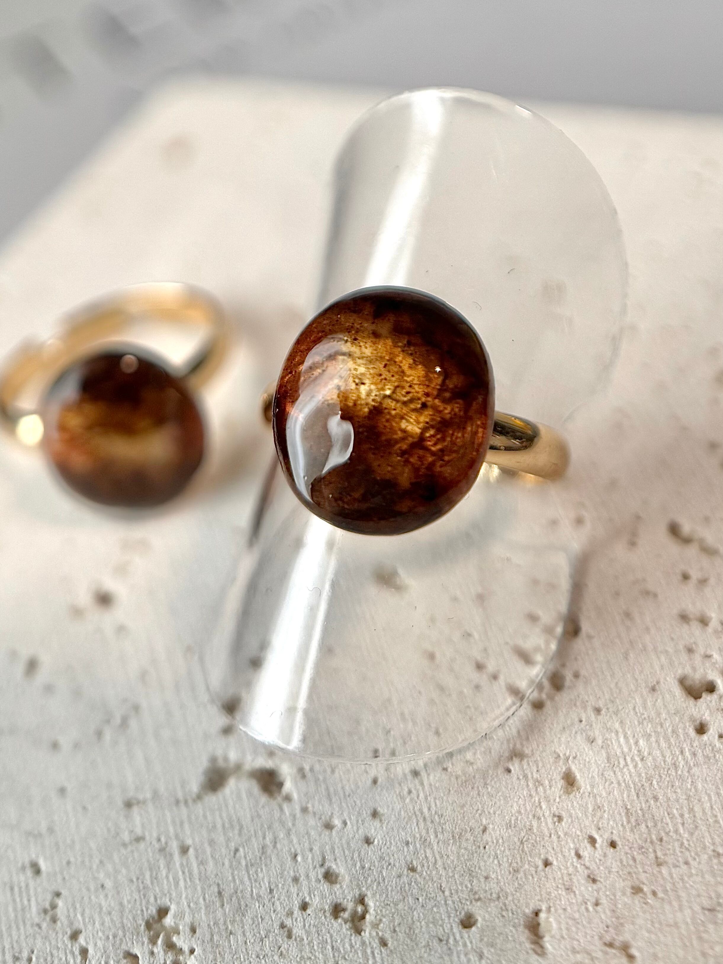こちらはリングのページですが、お揃いのカボションにてピアス・イヤリングもご用意しております。