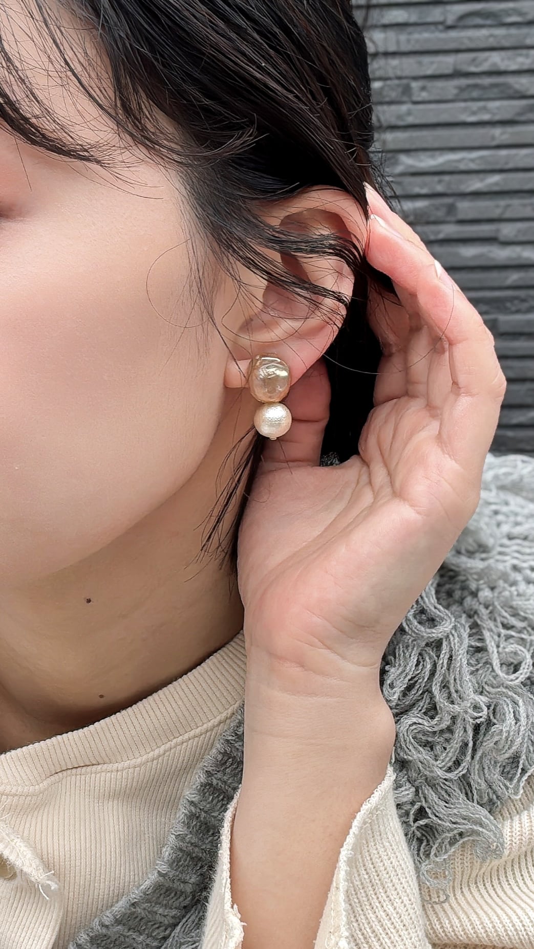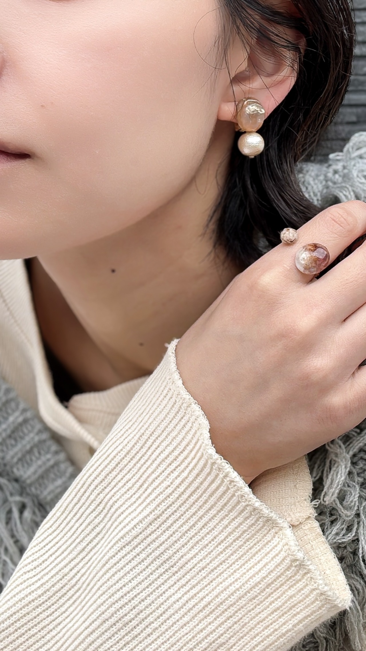 11月よりリニューアルし、コットンパールをつけてよりさりげなくレディライクに仕上げた淡水フェイクパール。