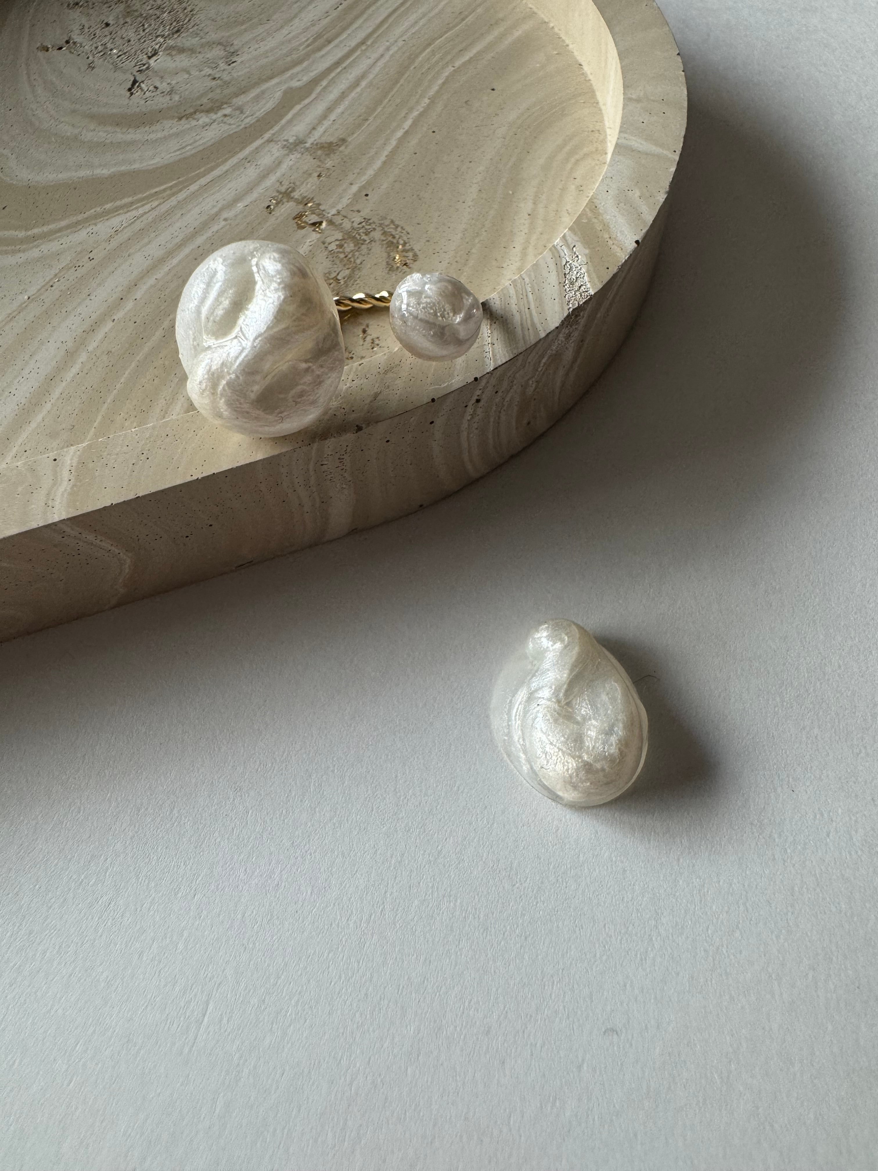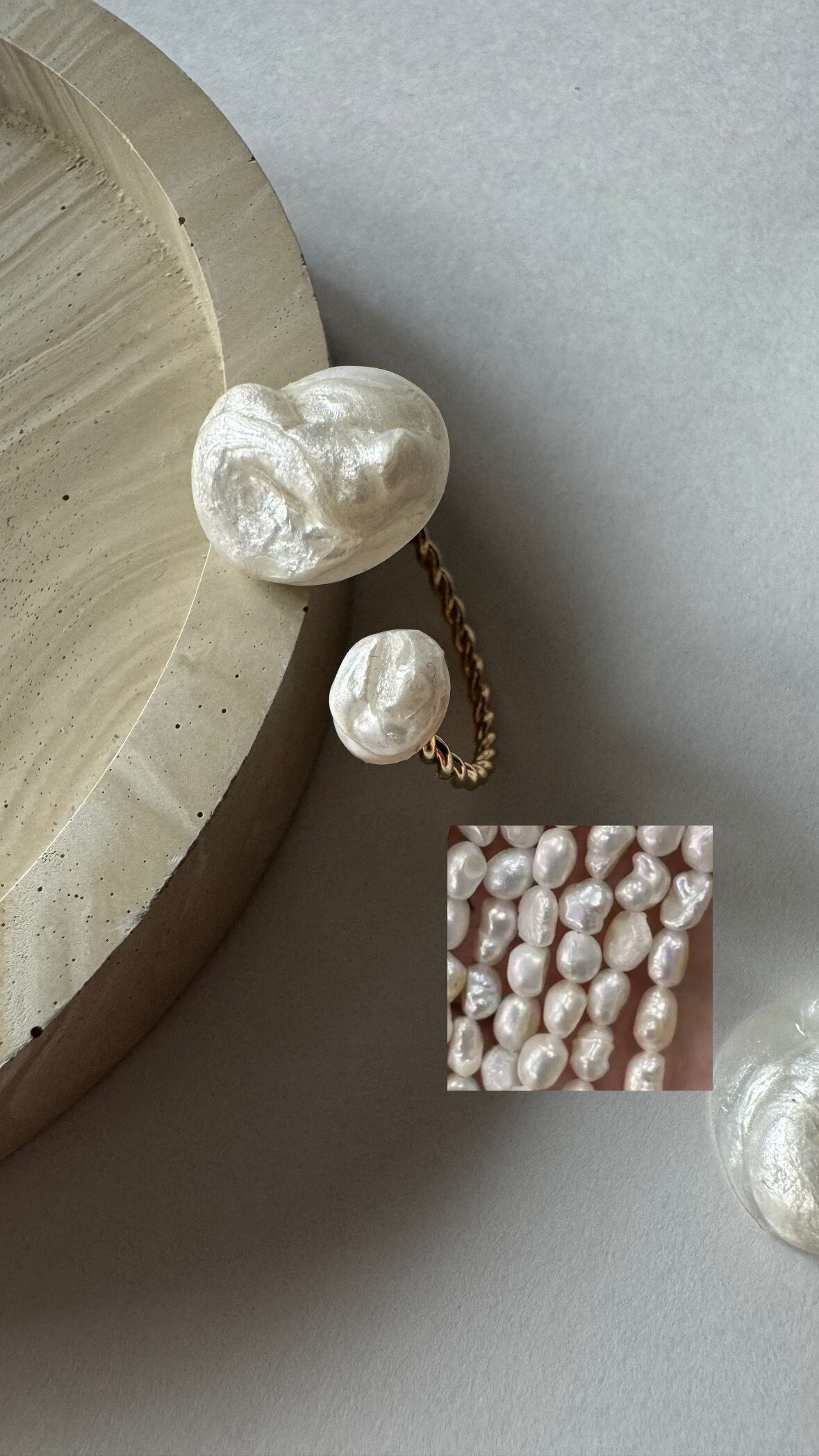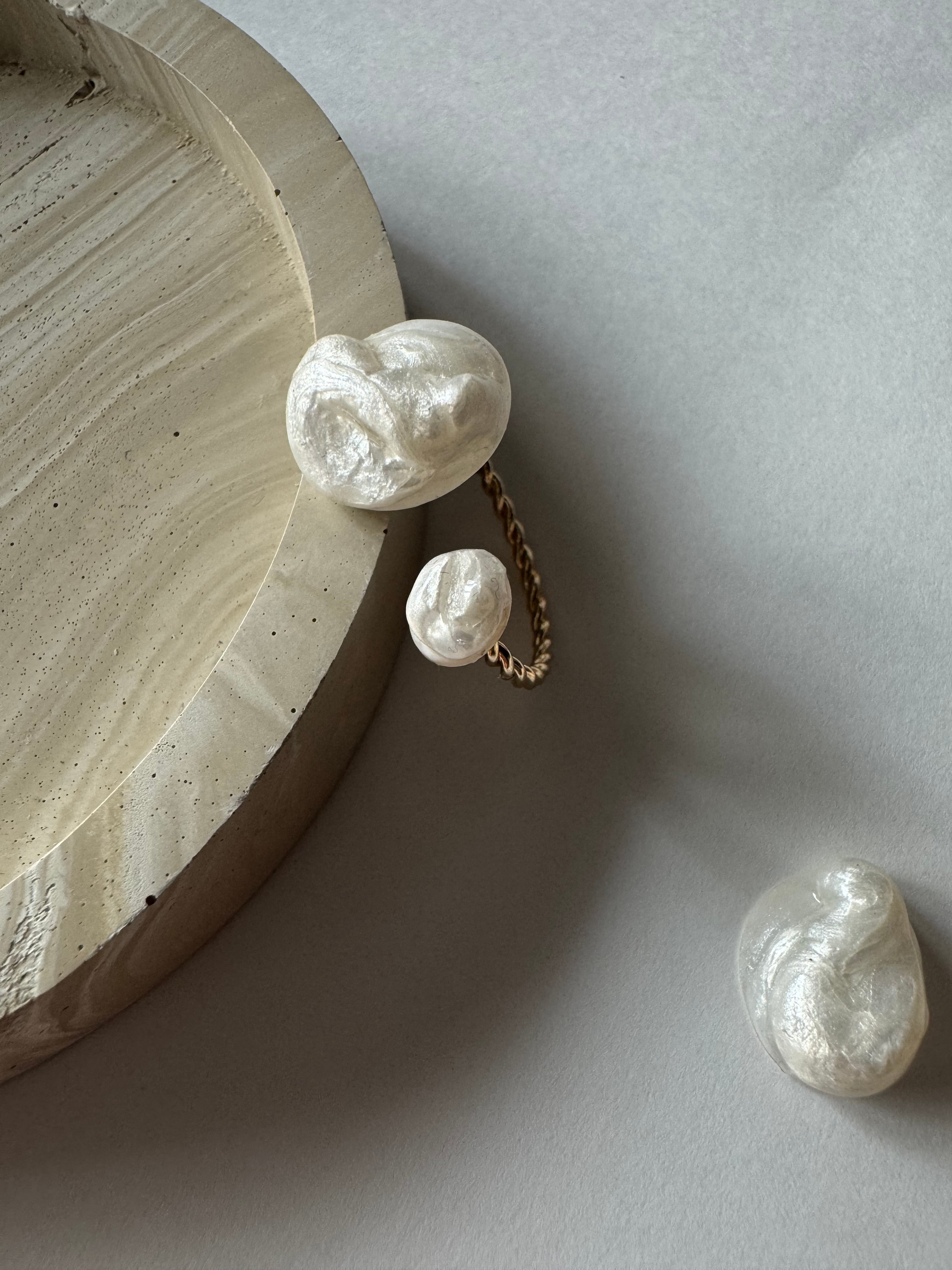 でこぼことした立体的なパールのため、定番のホワイトパールアクセサリーとは異なり、かなり個性的なデザインとなりました。