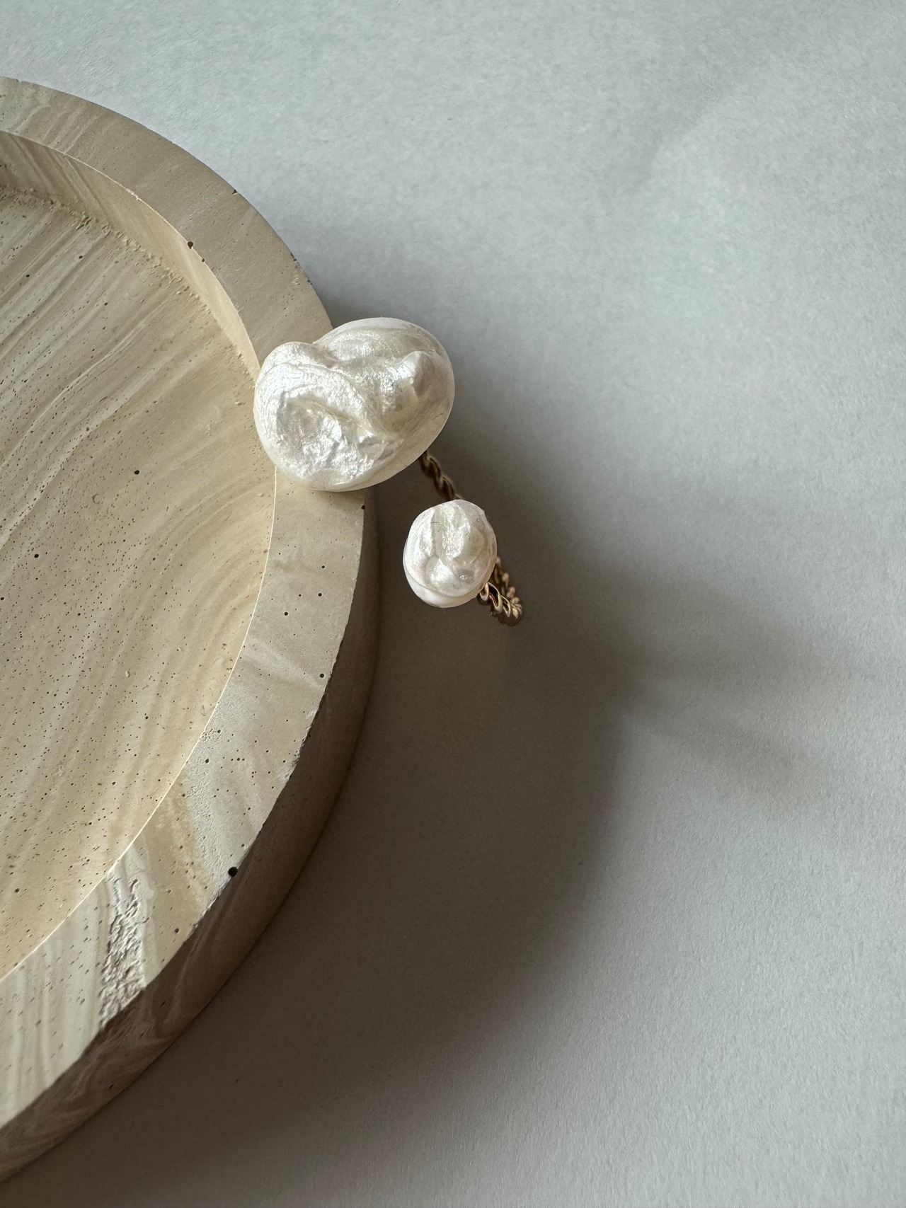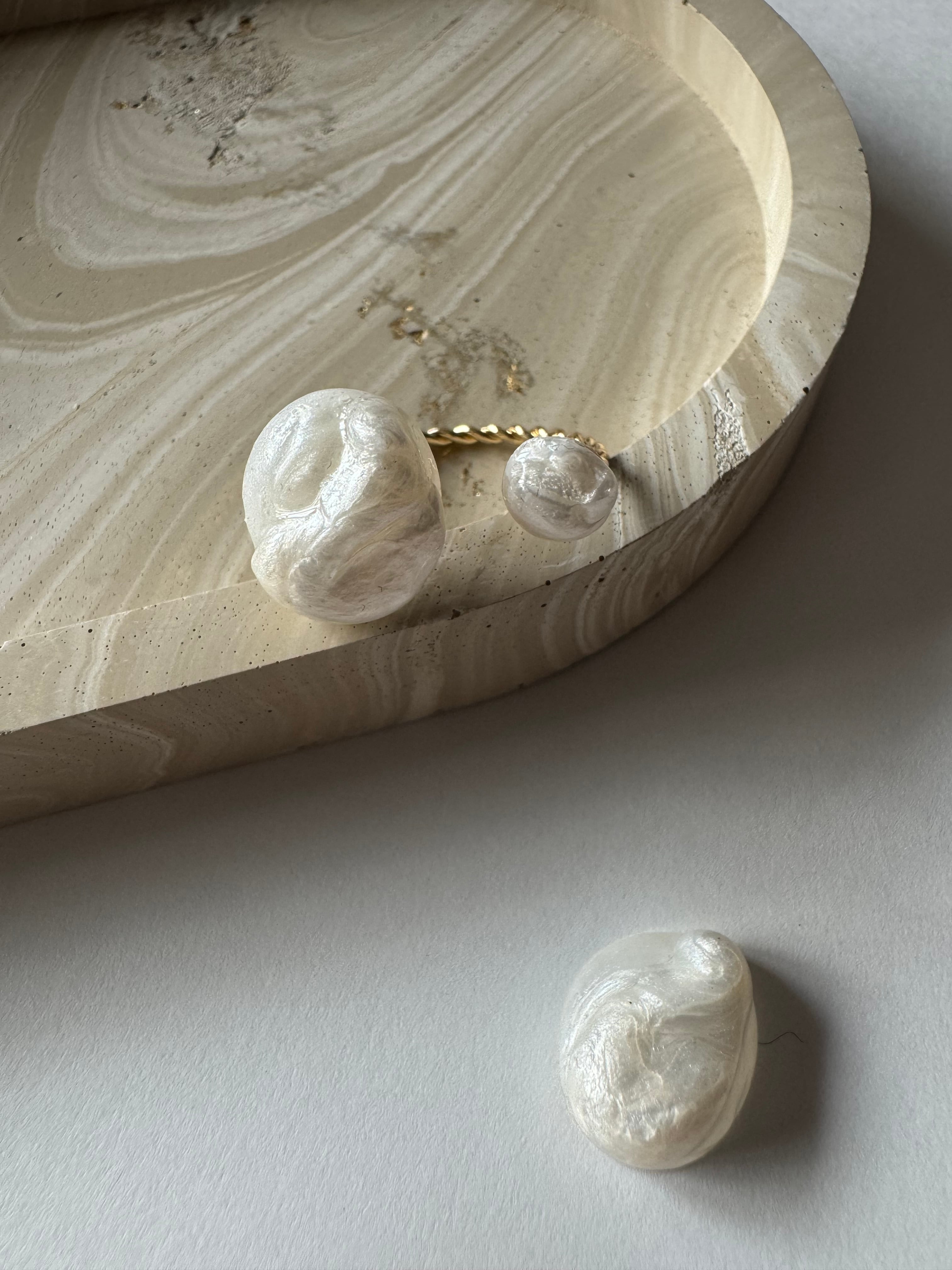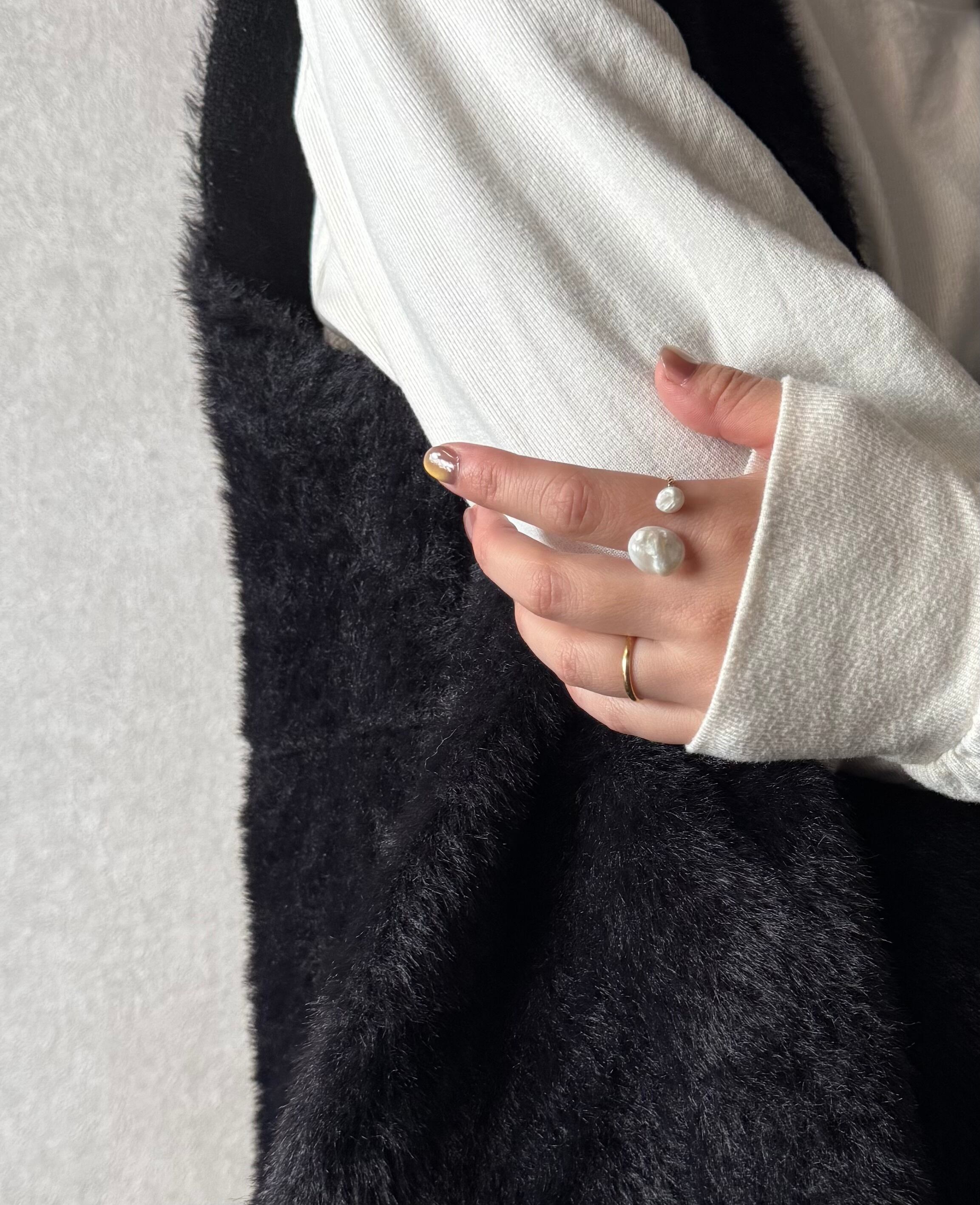 でこぼことした立体的なパールのため、定番のホワイトパールアクセサリーとは異なり、かなり個性的なデザインとなりました。