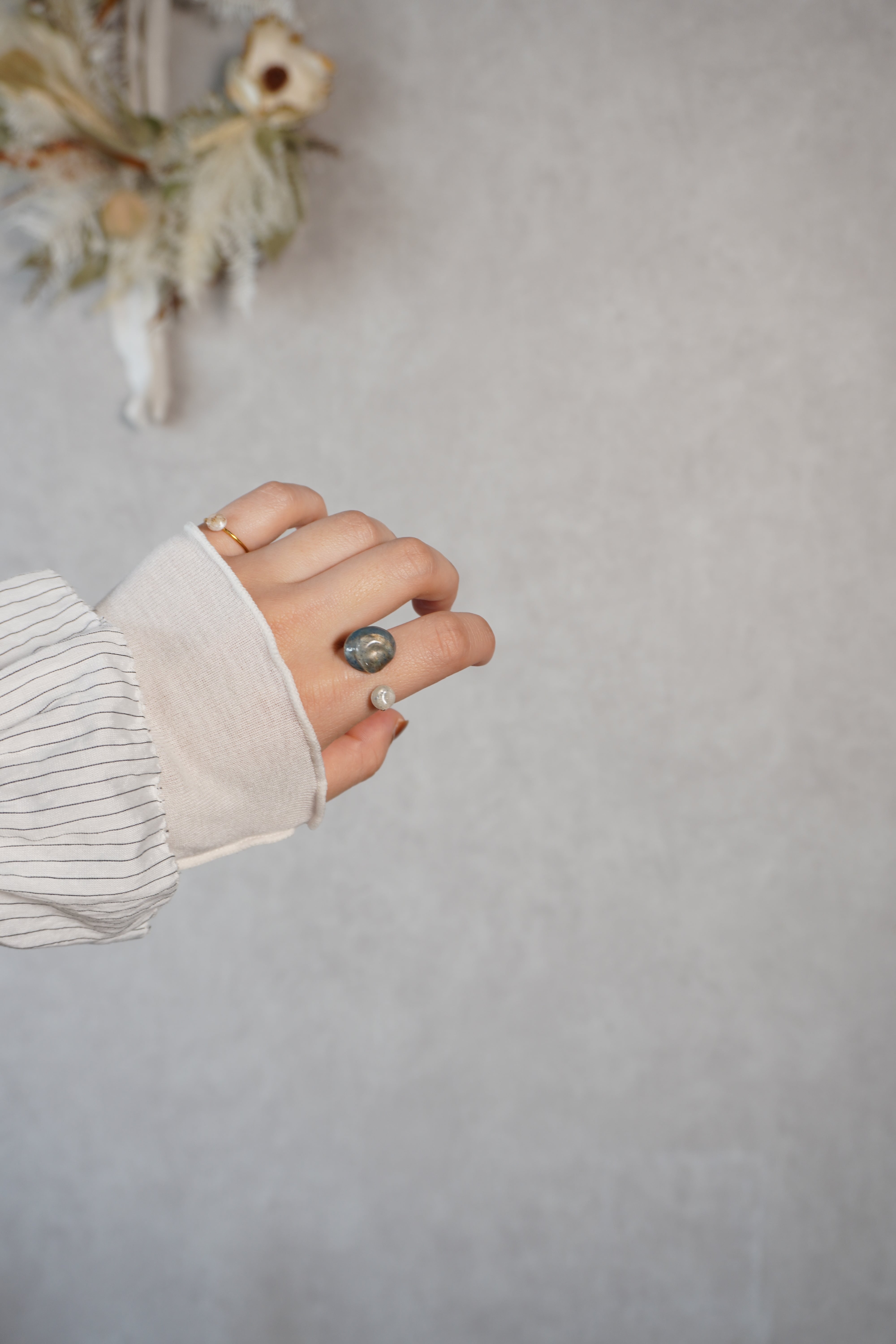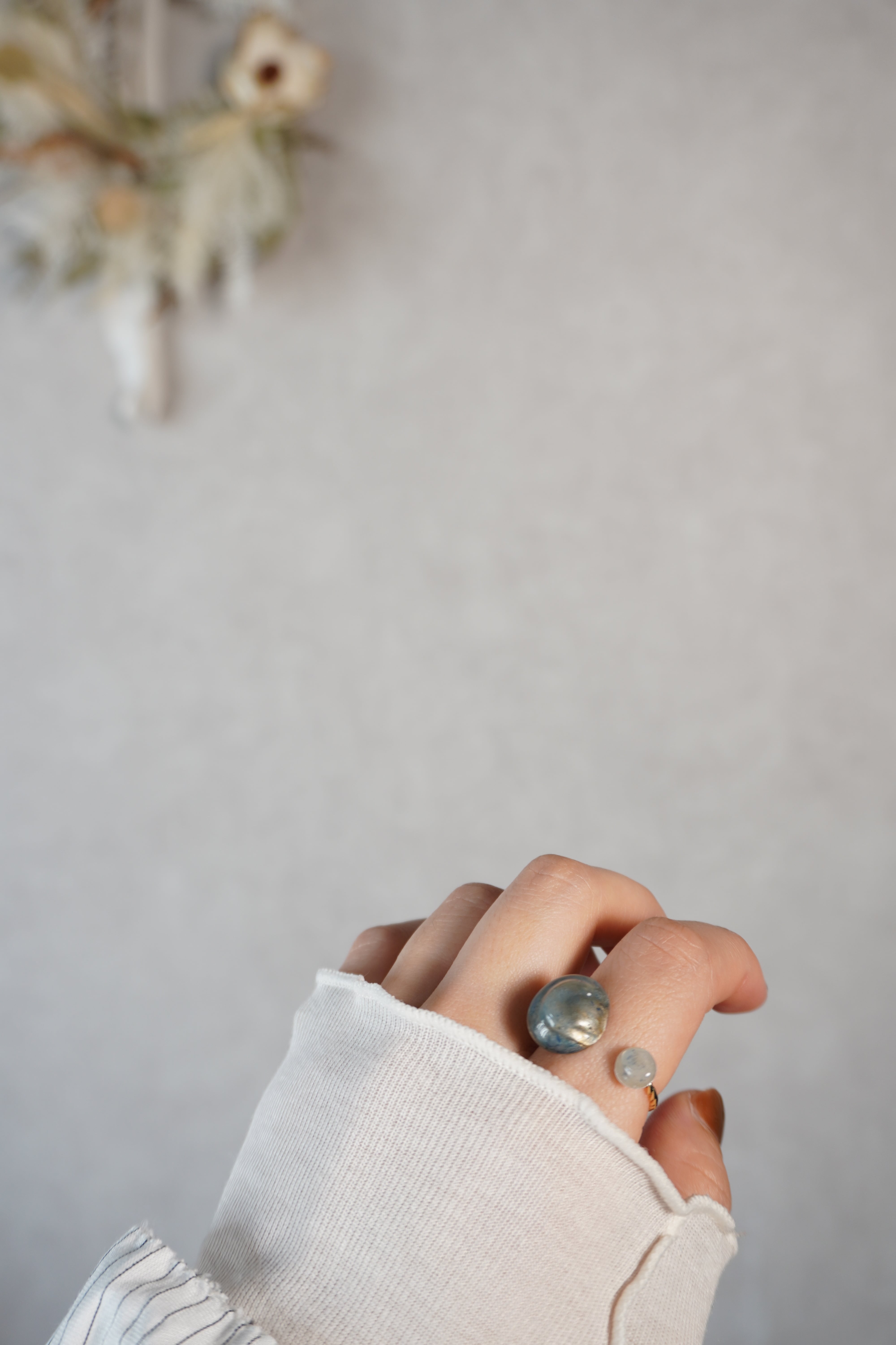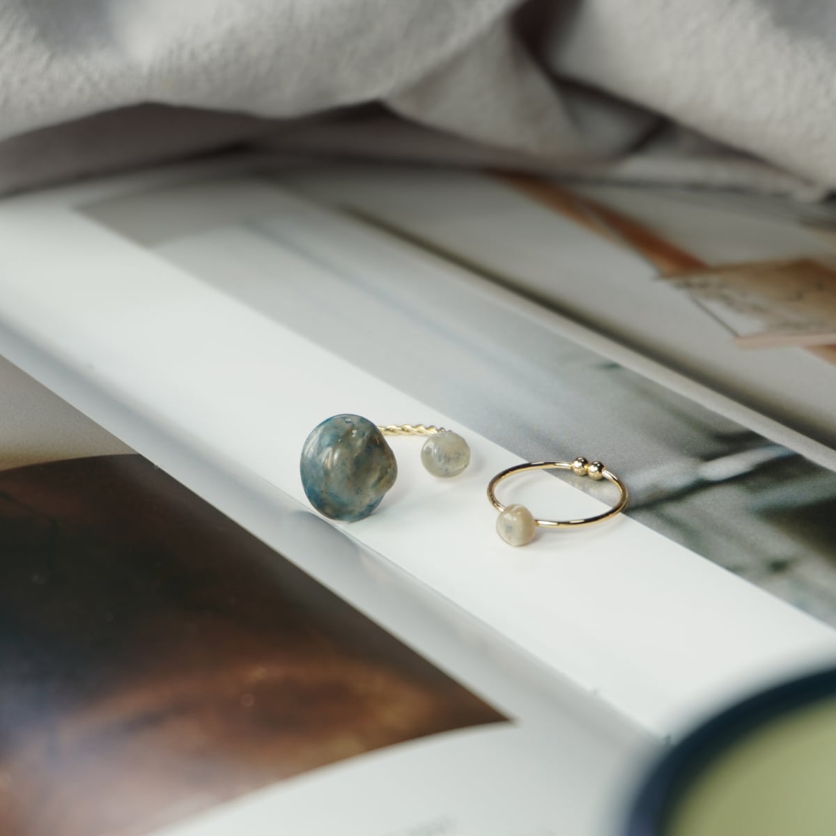 ふたつ並ぶことで、小さな宇宙が手元に広がるデザインです。