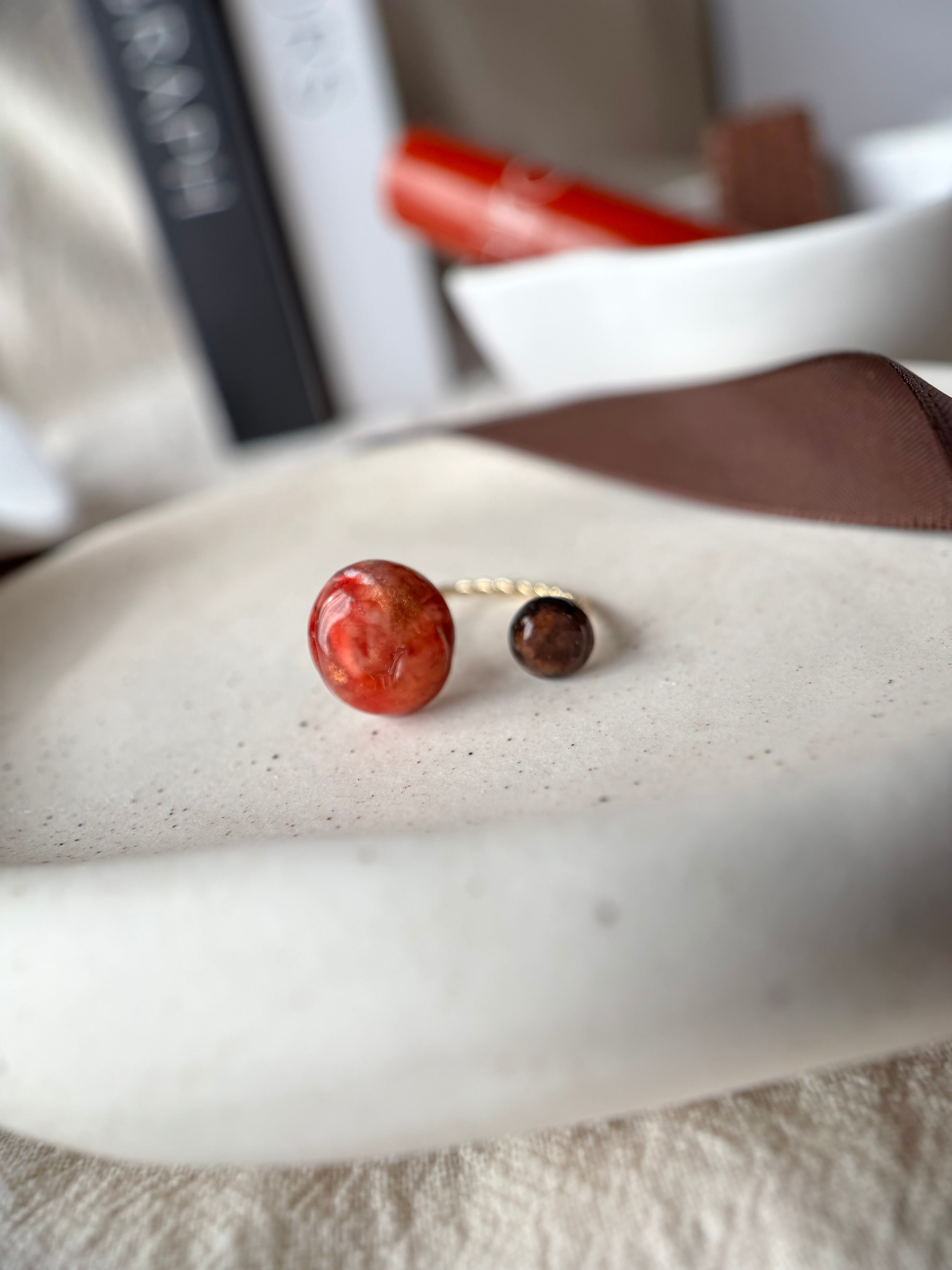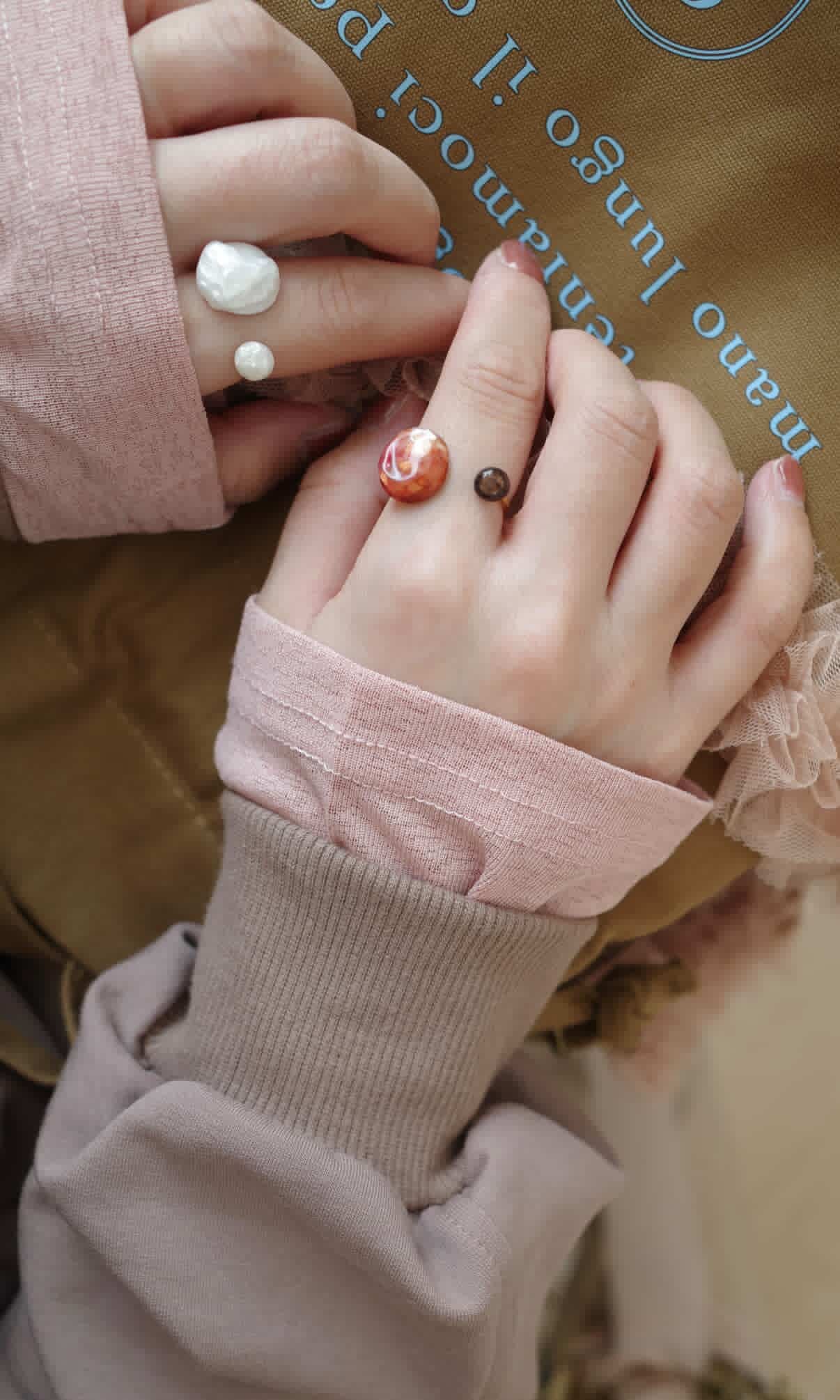 いちごチョコをイメージした、2粒デザインのリング。