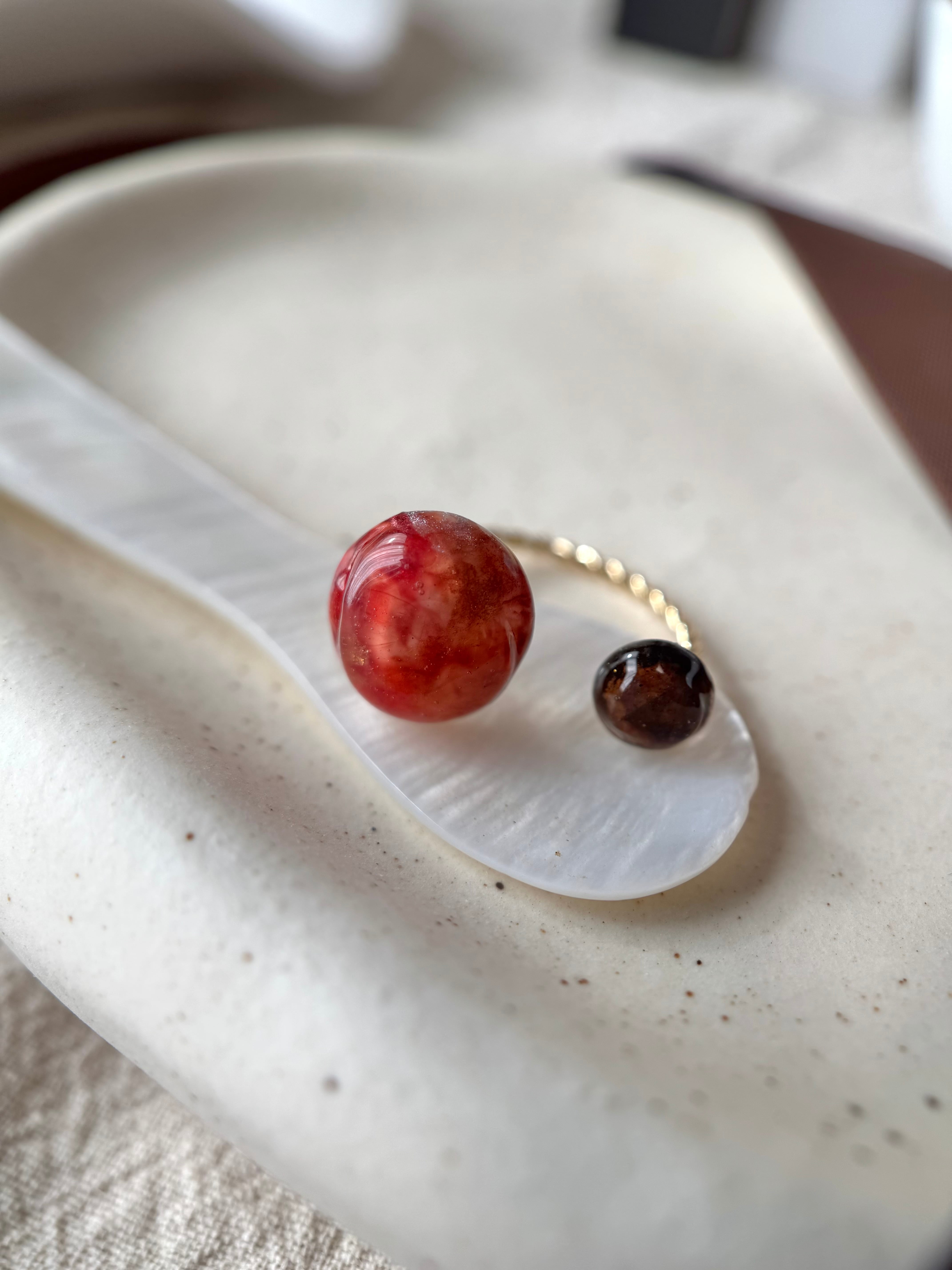 チョコカラーの小さなカボションを添えて、