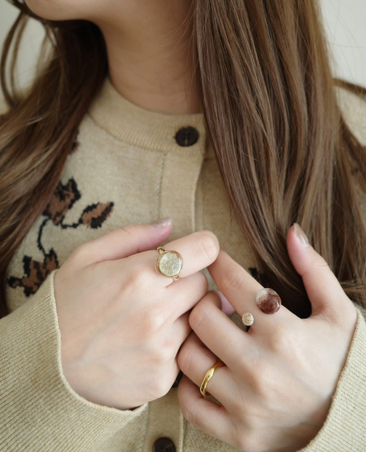 カボション自体は小さめですが、存在感のあるニュアンスに仕上がりました。